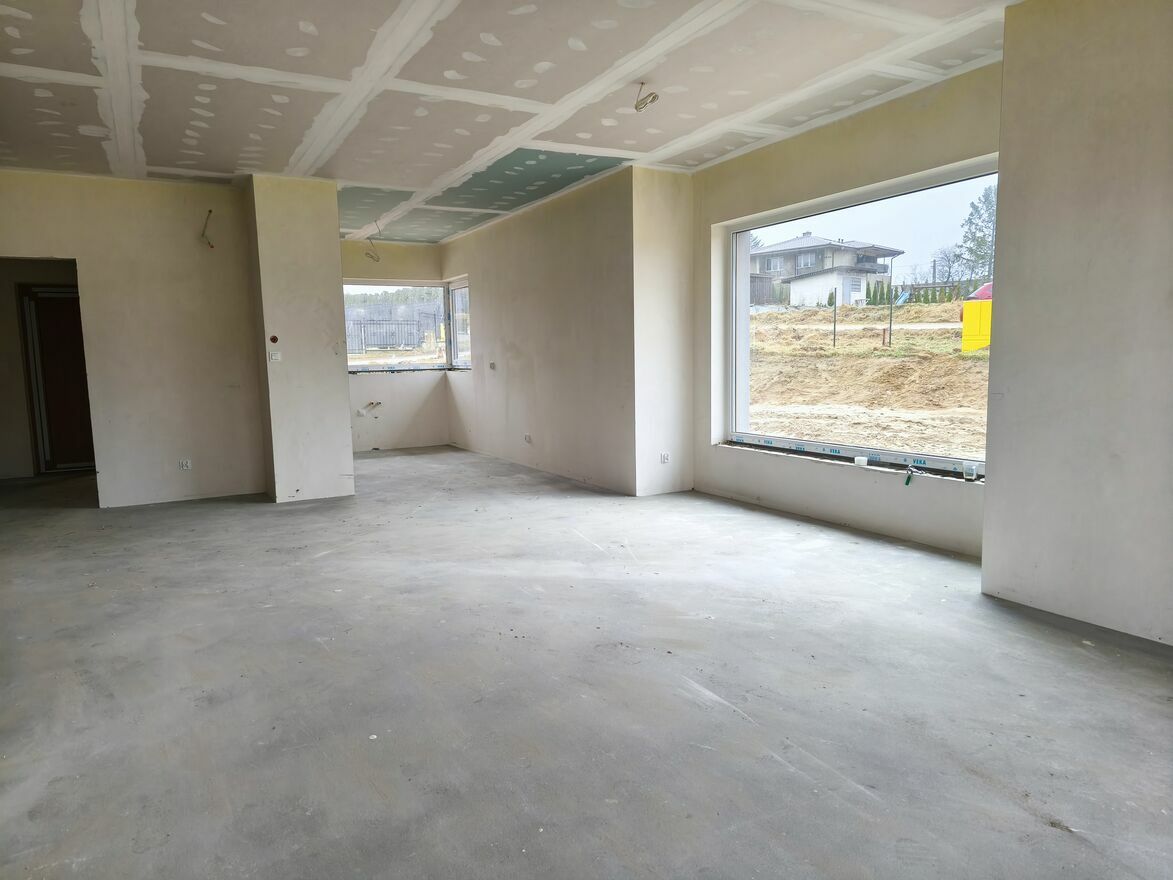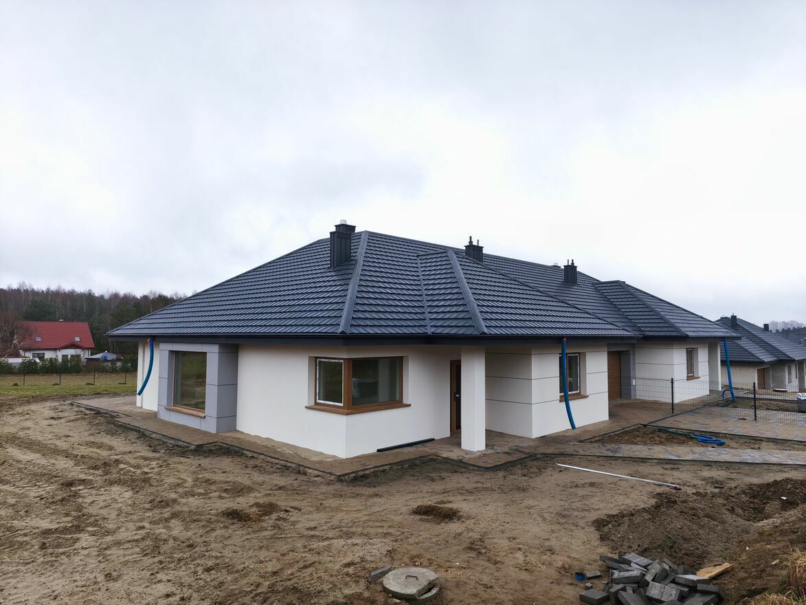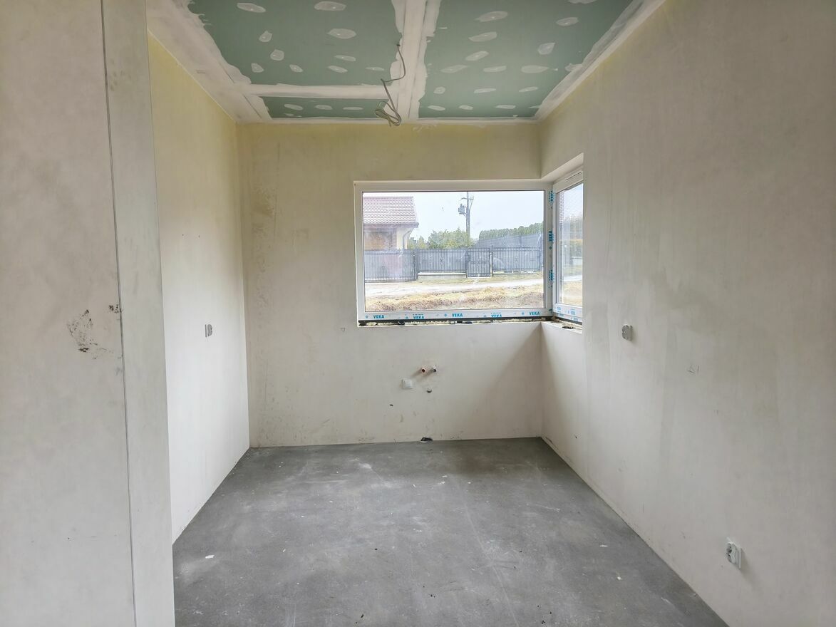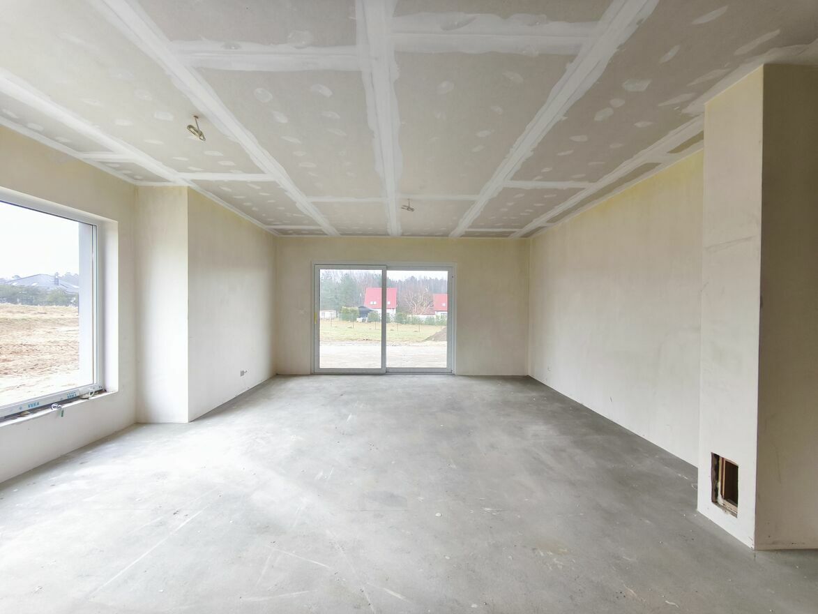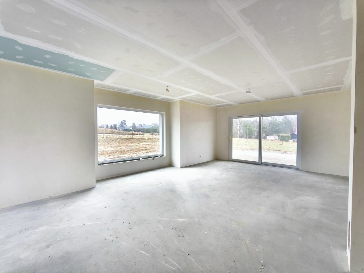Budynek powstał w 2025 roku z silki 24cm, ściany działowe gazobeton 12cm. Ocieplony 18cm styropianem, strop 24cm pianą. W budynku zamontowane są trzyszybowe siedmiokomorowe okna, a dach pokryty jest blachą. Wewnątrz tynki gipsowe. Ogrzewanie gazowe, we wszystkich pomieszczeniach podłogowe, piec w cenie. W domu rozprowadzone są wszystkie instalacje, na działce znajduje się szambo o pojemności 9m3. Budynek sprzedawany będzie w stanie deweloperskim, podjazd i taras wyłożone będą kostką.