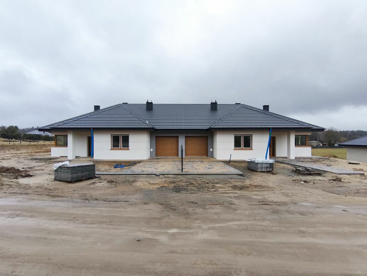 Wyjątkowa bryła, nowoczesna elewacja, garaż i duża działka to tylko niektóre atuty tej nieruchomości. Przeczytaj do końca i odkryj pozostałe.Na sprzedaż bliźniak typu Bungalow. Dostępny ostatni lokal, o powierzchni użytkowej 141m2. Główną rolę odgrywa tutaj przestronny salon z miejscem na kominek i spora kuchnia o łącznej powierzchni aż 50m2. Do dyspozycji nowych właścicieli są trzy niezależne sypialnie i 2 łazienki. Znajduje się tutaj także oddzielna kotłownia, garaż i funkcjonalny wiatrołap z miejscem na dużą szafę. To nie wszystko, nad całą powierzchnią rozciąga się także strych, dzięki czemu nie zabraknie Wam miejsca na przechowywanie.