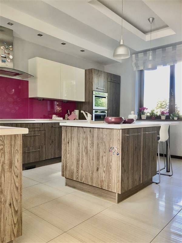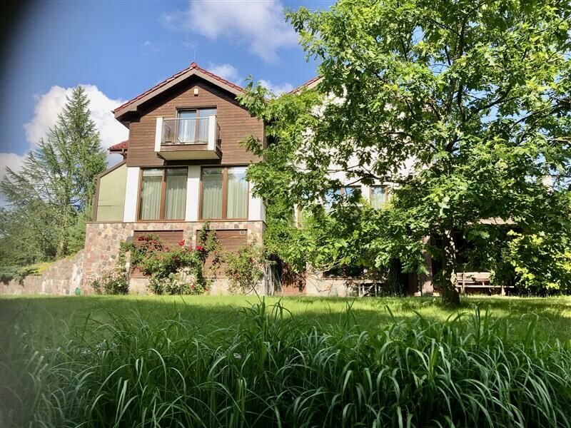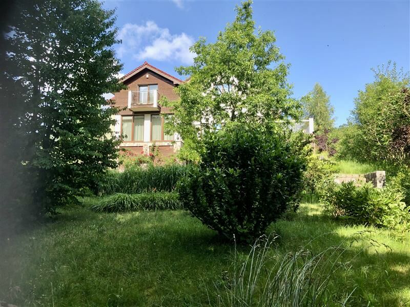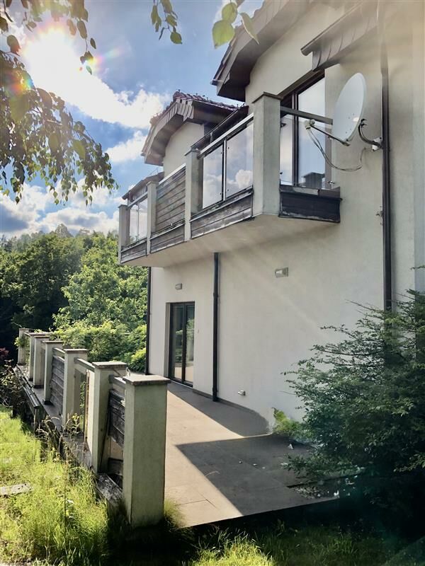 Dom został wzniesiony w 2011 roku, wybudowany w konstrukcji murowanej, ściany z pustaków, stropy żelbetowe, na dachu dachówka. Dom wykończony w wysokim standardzie, z wysokiej klasy materiałów, z dbałością o każdy detal. Wraz z domem sprzedawany jest również garaż jednostanowiskowy, który znajduje się na parterze budynku. Budynek jest na lekkiej skarpie, wejścia do domu mamy dwa jedno od strony głównej frontowej i od ogrodu do części piwnicznej. Dom wyposażony jest w pompę ciepła, rekuperację, odkurzacz centralny, kanalizację(zbiornik odpływowy). W salonie znajduje się kominek, wyjście na taras. Nieruchomość usytuowana jest na dużej działce 2126 m2, posiada bogaty, wspaniale zagospodarowany, dwupoziomowy ogród z bujną roślinnością oraz murowanym kominkiem w ogrodzie, też dostępna jest wędzarnia. PomieszczeniaDOM (powierzchnia użytkowa 369 m2, w tym parter i piętro.PARTER:- jasny, przestronny salon o pow. 49,89 m z dużymi witrynami okiennymi, kominkiem, wyjściem na taras,